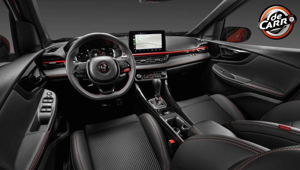 No Fastback, o espaço interno é valorizado com acabamento mais sofisticado, além de recursos tecnológicos que aumentam o conforto, como saídas de ar traseiras e múltiplos porta-objetos. O painel e os sistemas de entretenimento estão posicionados para fácil acesso, contribuindo para uma experiência de viagem agradável.